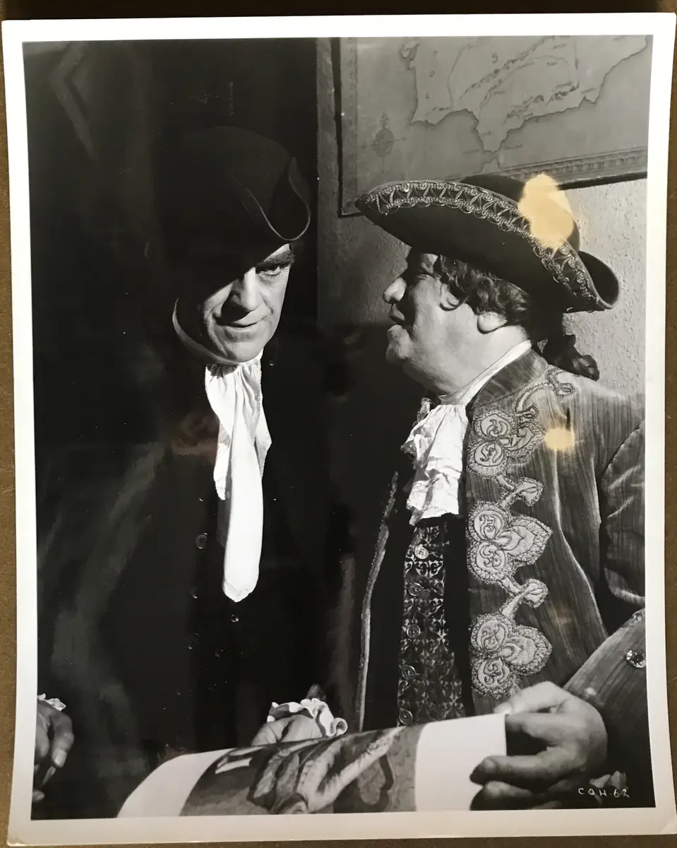 Great image of Karloff. The white areas to the interior are from glue bleed from the caption snipe verso.