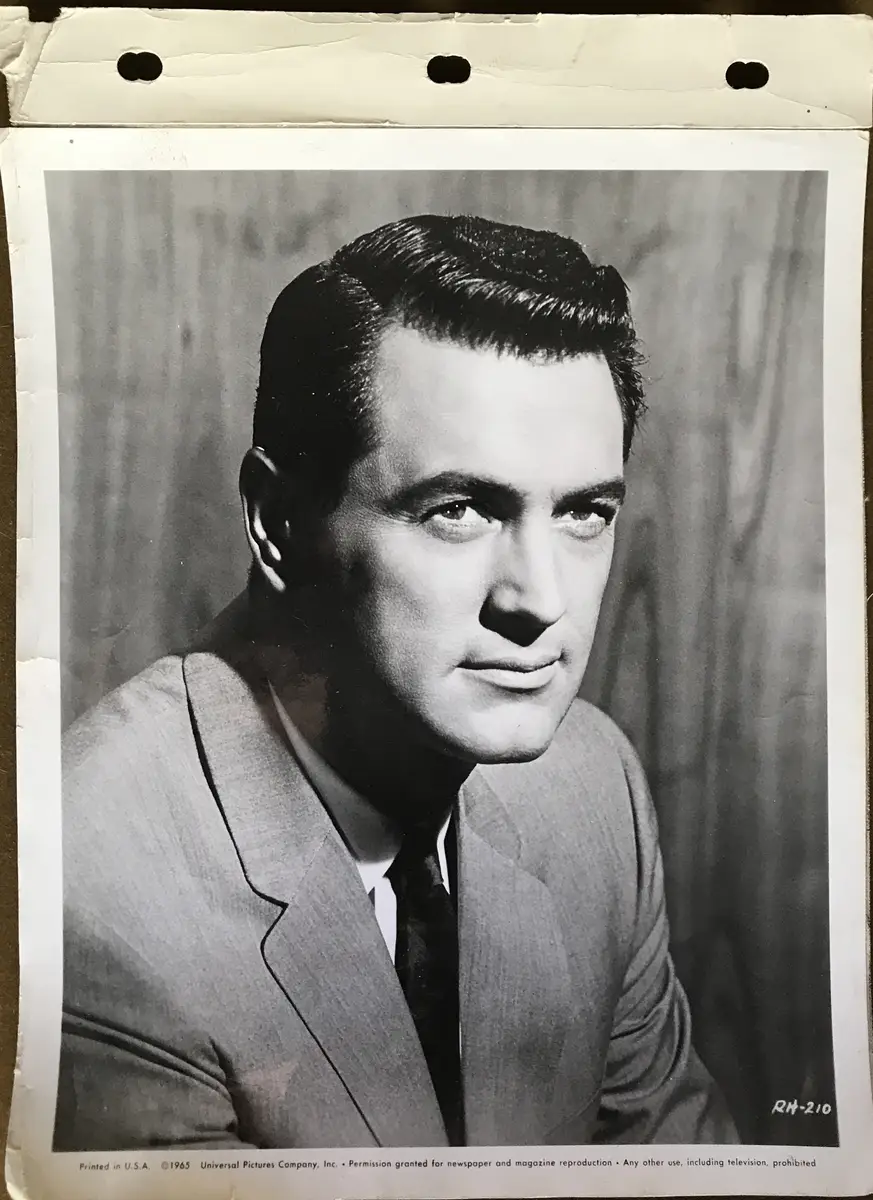 Linen Backed Key Book Portrait Still Of Rock Hudson. Wear to the borders and bending to the corners.
