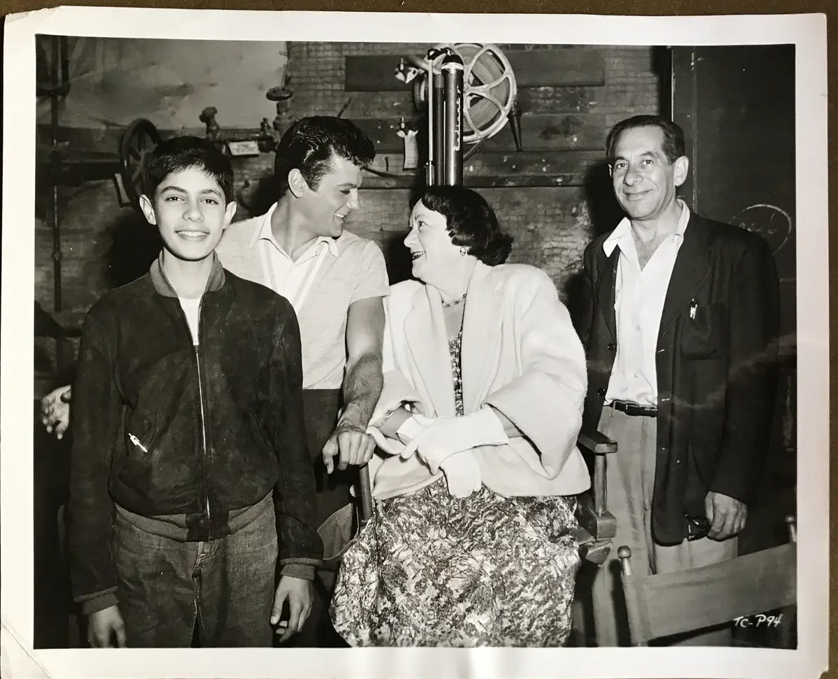 Original Publicity Still Of Tony Curtis, His Parents and little brother from the publicity campaign for the film The Square Jungle. Nice condition. Minor wear. Slight paper loss to the bottom right corner area.